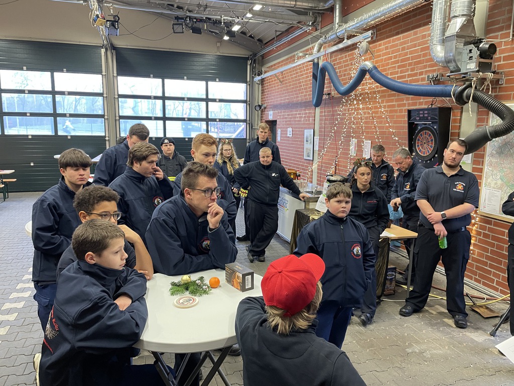 Am Samstag, 6. Dezember 2025 war der Weihnachtsbasar unserer Jugendfeuerwehr. Wir bedanken uns bei allen, die ihn vorbereitet und durchgeführt haben und natürlich bei den vielen Gästen, die zu uns gekommen sind. Sie konnten schöne Stunden bei selbstgebackenem Kuchen und Kaffee, bei Grillwürsten mit Pommes oder bei Stockbrot verbringen. Die selbstgebastelten Weihnachtsgeschenke fanden reißenden Absatz, sodass zur Förderung der Jugendfeuerwehr eine schöne Summe zusammengekommen ist.