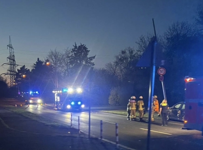 Einen Tag später, am Donnerstag, 5. März 2026 um 18:44 Uhr wurden wir wieder mit dem Einsatzstichwort VUNF1 auf die Edsel- Ford- Straße alarmiert. Dort kam es zu einem Alleinunfall eines PKW.