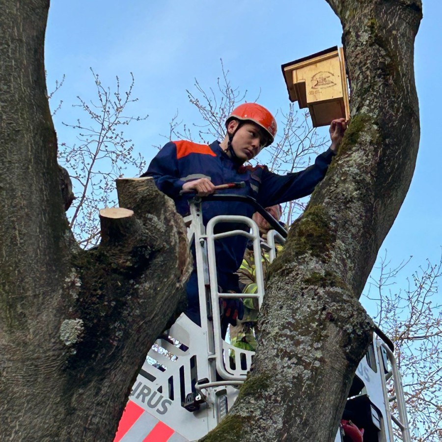 Unsere Jugendfeuerwehr hat Nistkästen für Vögel gebastelt. Sie wurden jetzt in Merkenich mit Hilfe einer Drehleiter der Berufsfeuerwehr aufgehangen. Weitere Informationen gibt es hier.