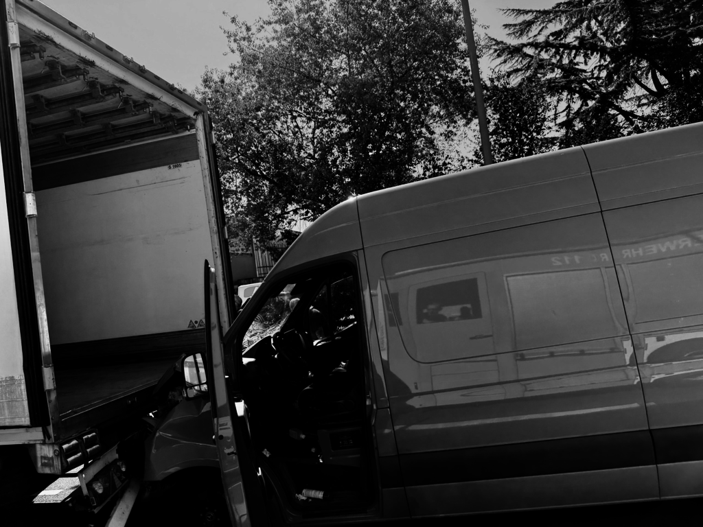 Wenn Du auf das Schild schaust, befindet sich der Hydrant 3,7 Meter rechts vom Schild und 1,6 Meter vor dem Schild.