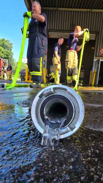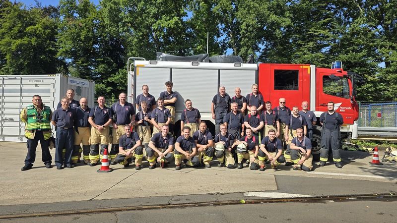 Am Samstag, 28.6.2025 waren unsere Atemschutzgeräteträger zu einer gemeinsamen Fortbildung in der Feuerwehrschule in Weidenpesch. Neben einer theoretischen Einweisung in das Verhalten bei einem Atemschutznotfall wurden Strahlrohrtraining, Einsatz im gasbefeuerten Übungscontainer sowie das Verhalten bei einer brennenden Gasfackel ausgebildet.