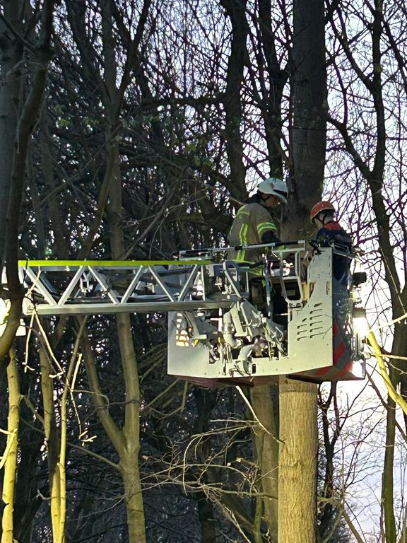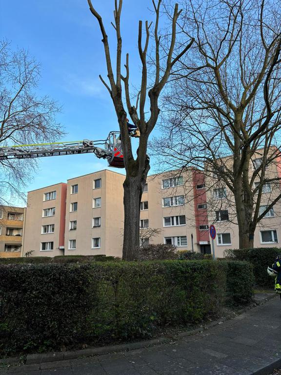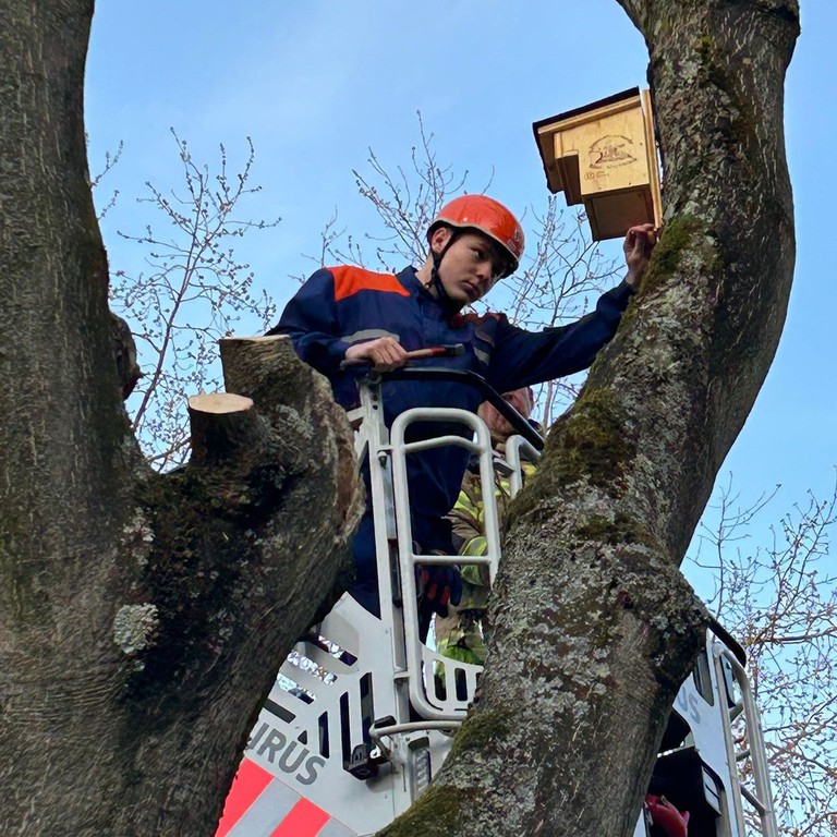In den Wintermonaten hat unsere Jugendfeuerwehr 6 Nistkäsen für Vögel gebaut. Die Bausätze wurden von der NRW-Stiftung für Naturschutz, Heimat- und Kulturpflege sowie der Jugendfeuerwehr Nordrhein- Werstfalen gestiftet. Der Dachdeckerbetrieb Faust stiftete die Dachpappe. Mitte März 2026 wurden die Nistkästen am Feuerwehrhaus, in der Wacker- Siedlung sowie im Fuhligswäldchen angebracht. Hier unterstützte die Drehleiter der Feuerwache Weidenpesch der Berufsfeuerwehr. Allen an dieser Aktion Beteiligten ein Herzliches Dankeschön. (JF)