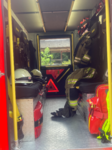 Atemschutz: 3 Pressluftatmer im Mannschaftsraum, Vorrüstung für 4. Gerät vorhanden, Tasche mit Ausrüstung für Atemschutznotfall