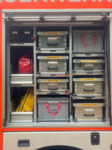 Gerätesätze: Wasserschaden, Türöffnung, Verkehrsunfall, Schornsteinbrand, Hochhausbrand, Nebellöschsystem, Kettenzug, Handwerkzeug, Erstdekontamination, Elektrowerkzeug, Werkzeug